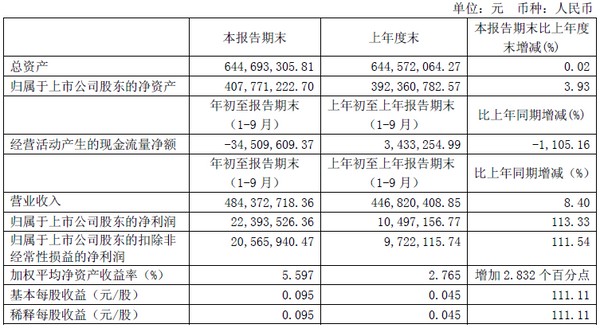 寶光股份2014年三季度主要財務指標